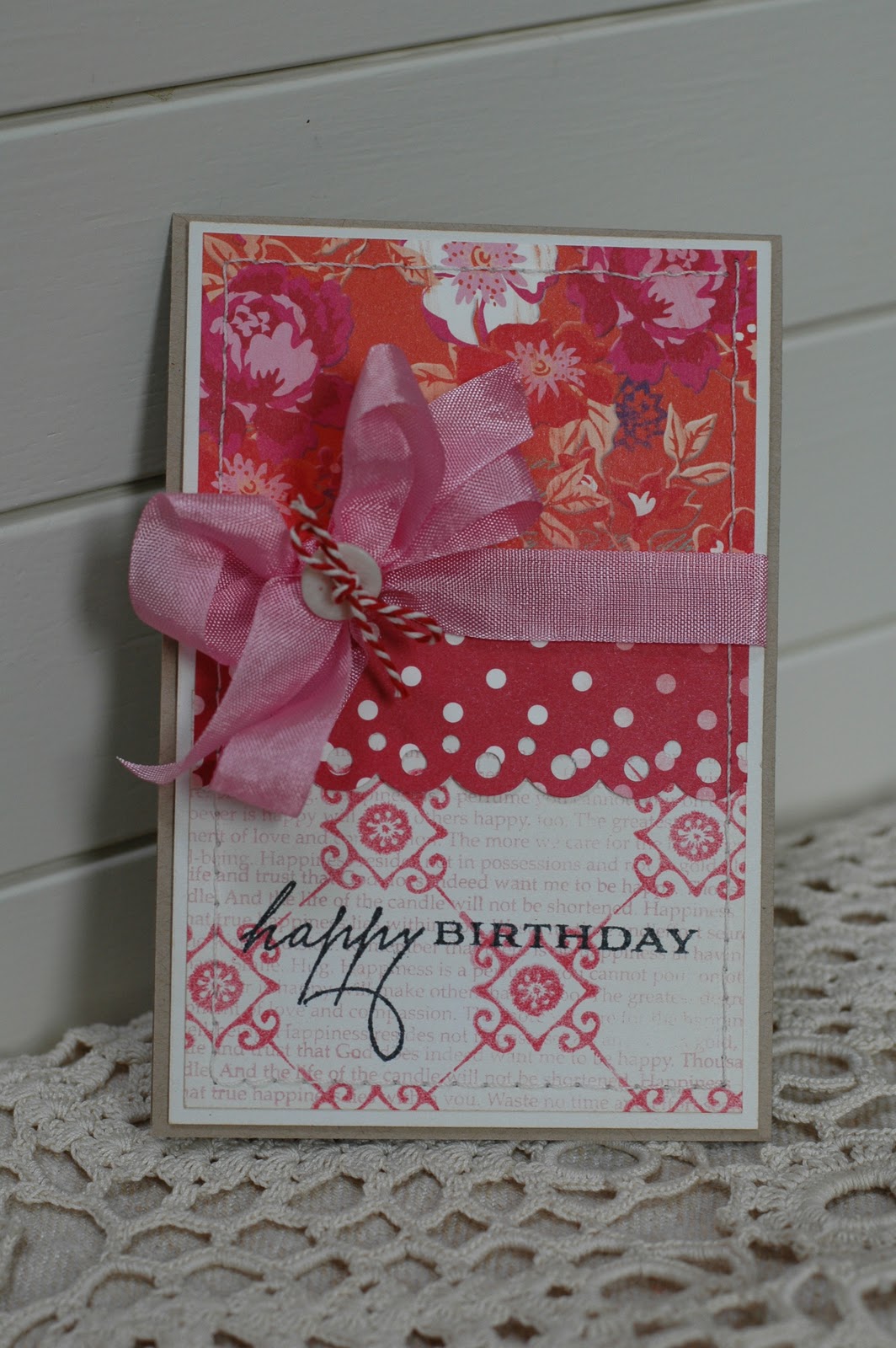 Many of you commented on my use of combinations of heavy printed paper. I was thinking of the reason why I like to use the papers in this way. Maybe it has something to do with my quilter's background. I am a quilter for more than 10 years (started at the age of 19 after being motivated by my mother). I really like to make combinations with fabrics and colors. Many 'rules' helps a quilter to make the good mix. It has to do with dark-light colors, kind of prints etc. In fact with scrappaper it works the same. So, if you like to know more about this, I recommend you to borrow a quilt book for beginners and it will definitely help you to make nice combinations!